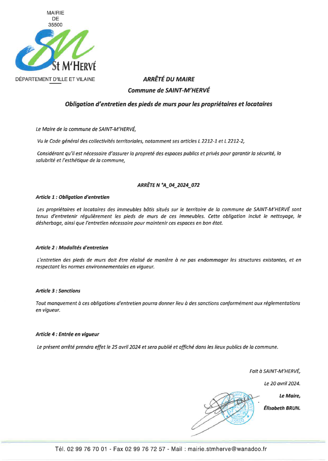 Arrêté municipal relatif à l'obligation d'entretien des pieds de murs pour les propriétaires et locataires